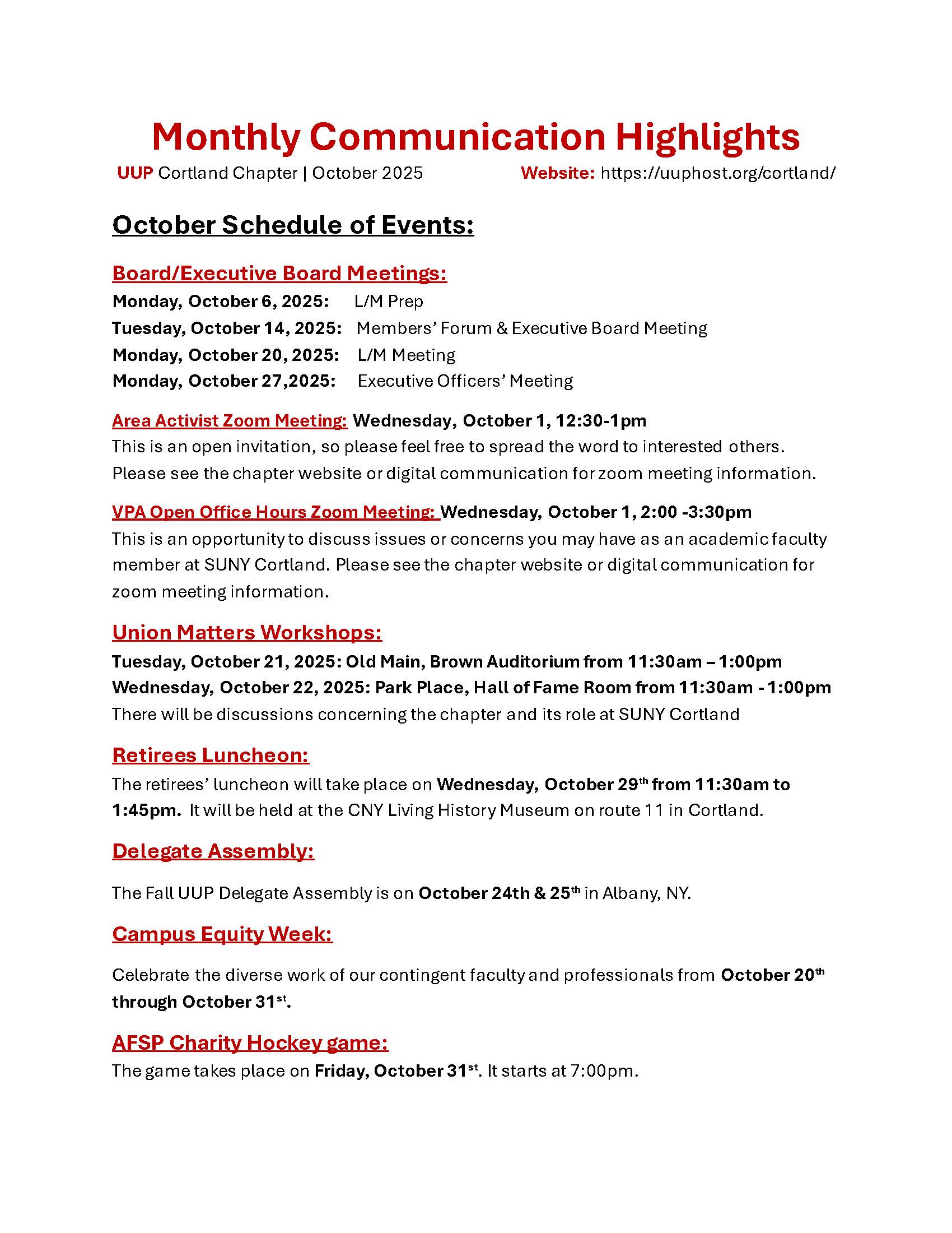 UUP Cortland Chapter | September 2025 Website: https://uuphost.org/cortland/