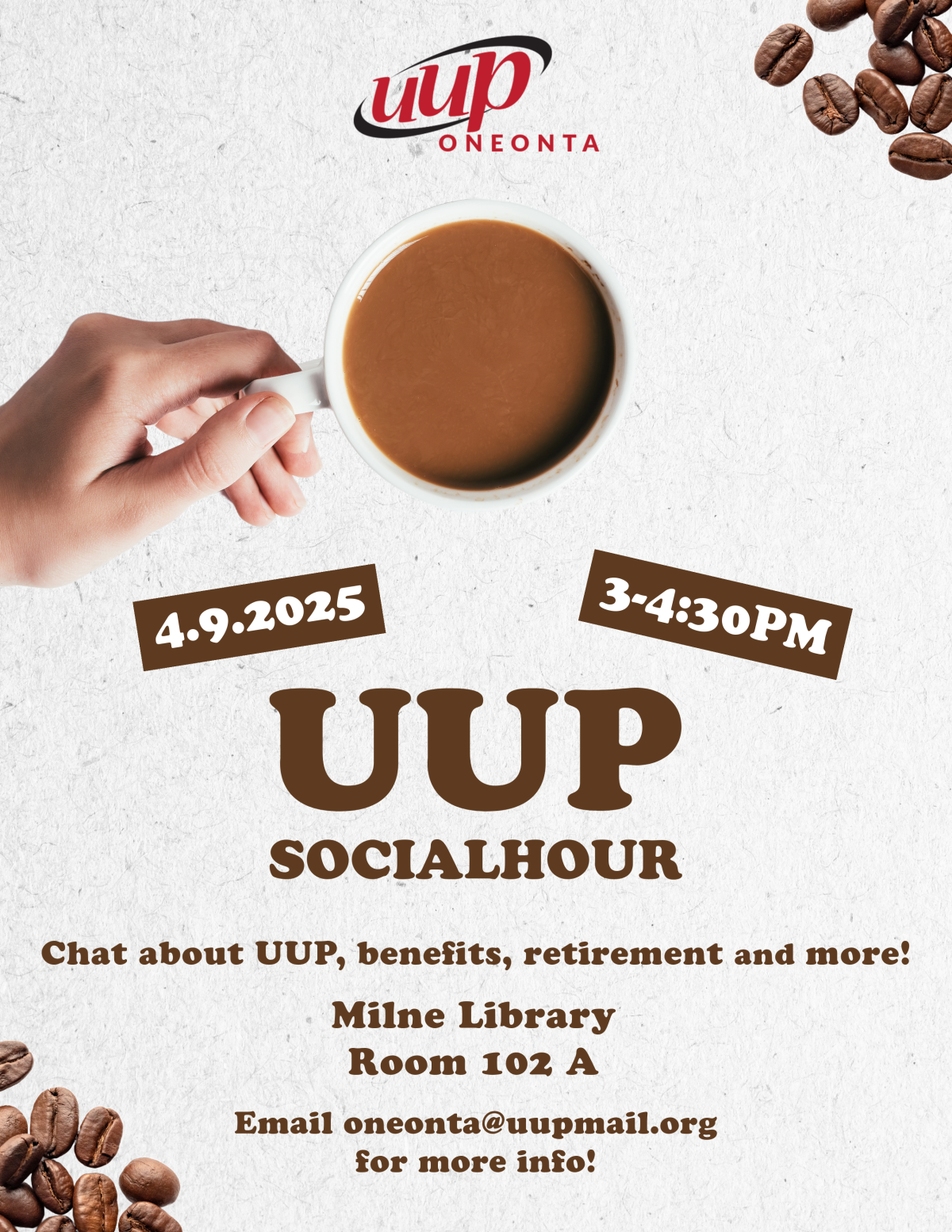 Please send any questions you have about the following events to Teresa DeSantis, UUP Oneonta Chapter Assistant, at: oneonta@uupmail.org